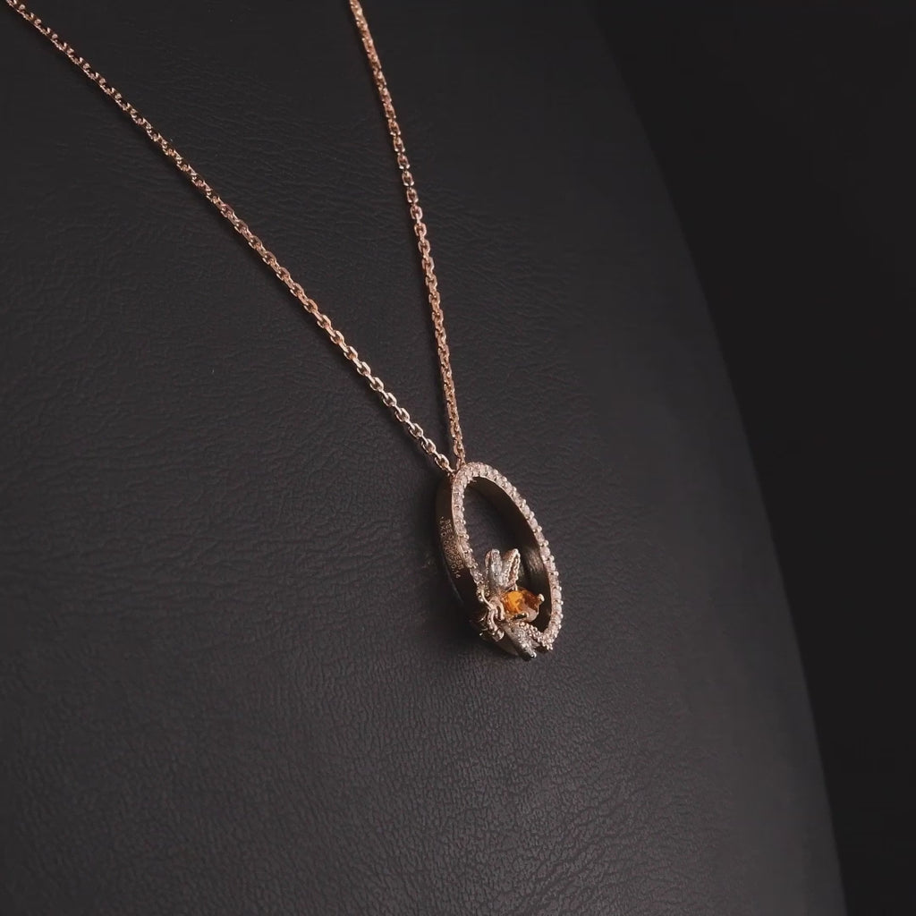 LETTER O GOLD DIAMOND CITRINE NECKLACE