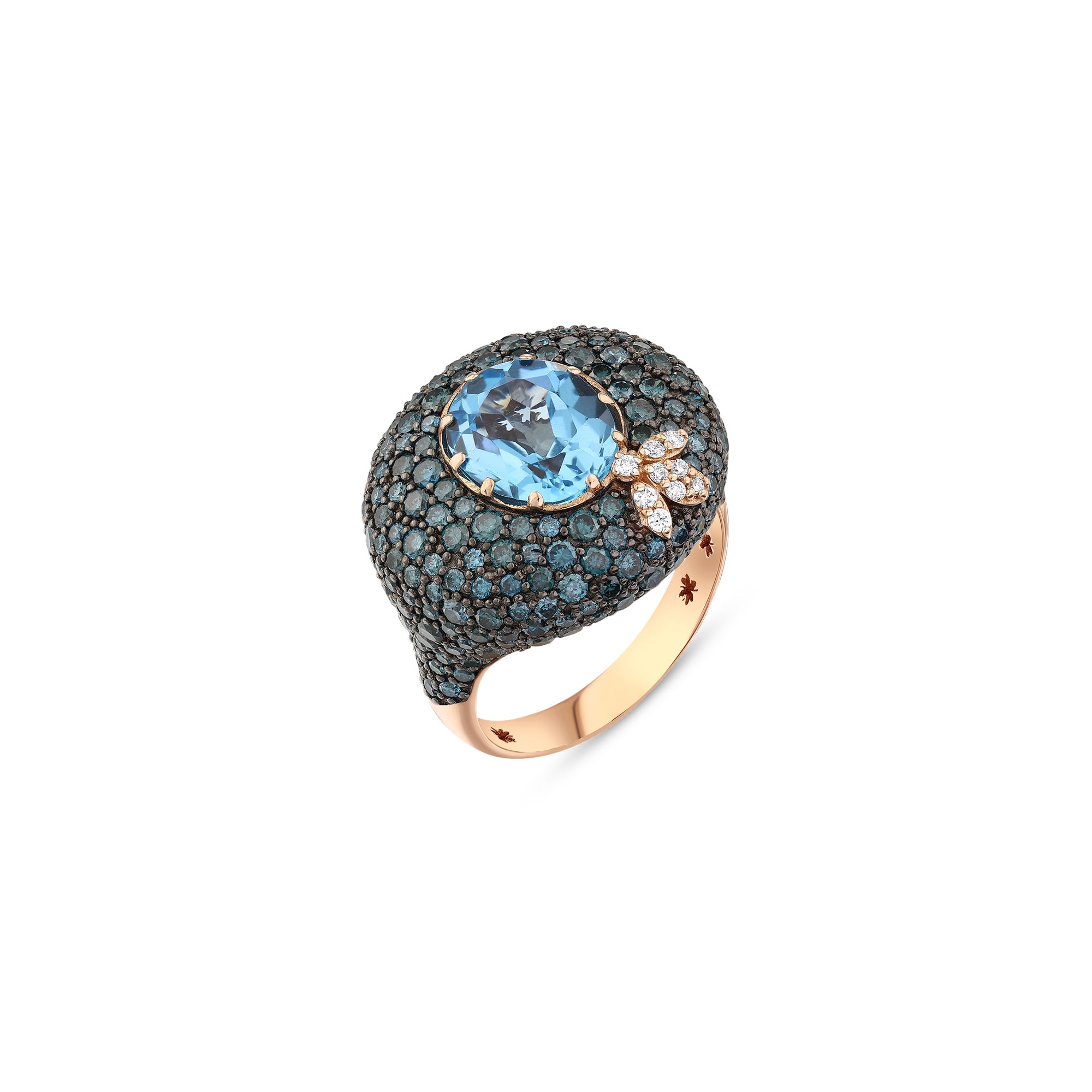 QUEEN BEE DEA GOLD DIAMOND BLUE TOPAZ PINKY RING